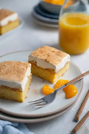 👉🏻 Statt Mandarinen kannst du auch andere Früchte verwenden, wie z.B. Pfirsiche oder Beeren – ganz nach deinem Geschmack! 👉🏻 Der Kuchen lässt sich gut vorbereiten und schmeckt am besten, wenn er ein paar Stunden durchgezogen ist.